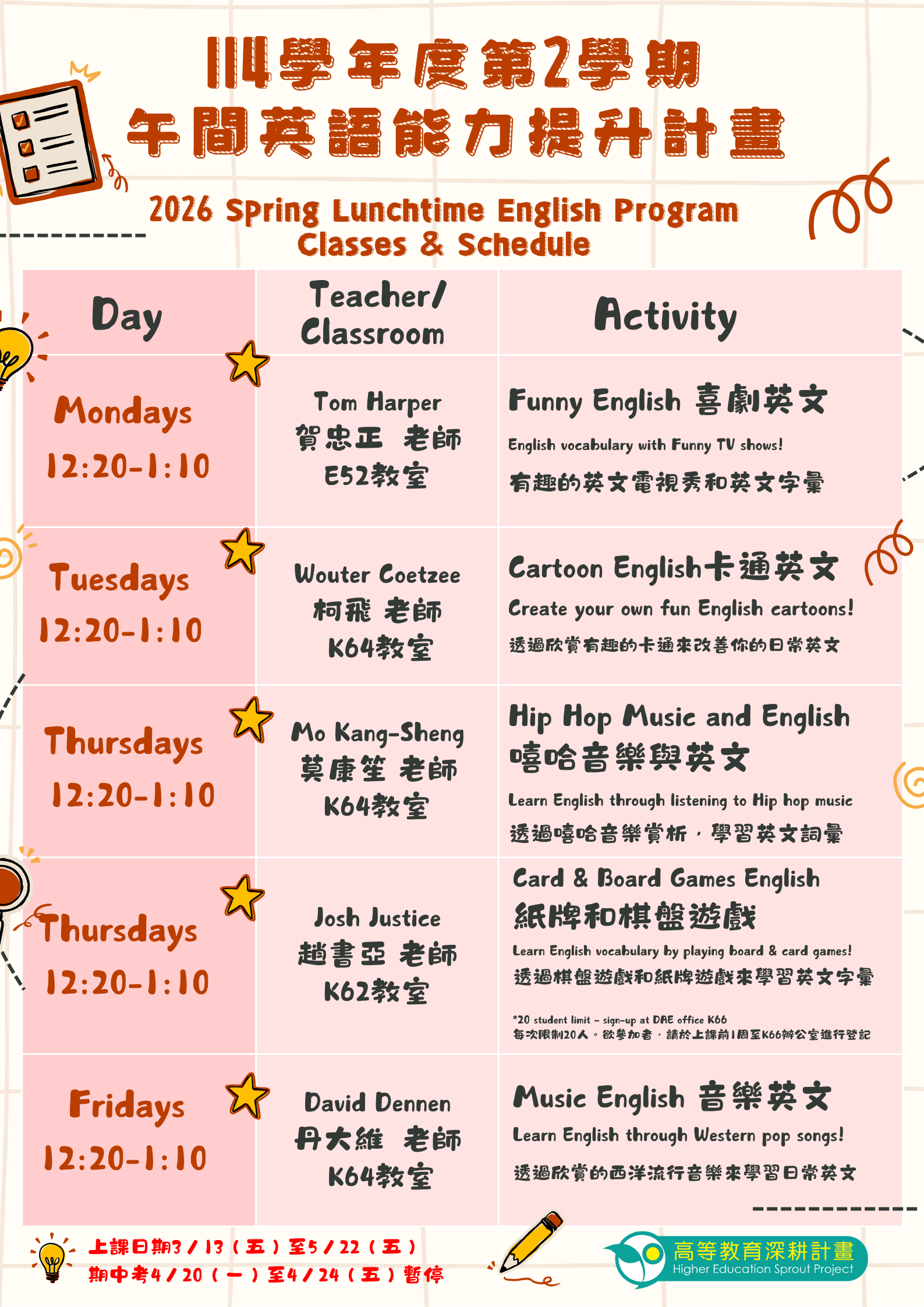 【午間英語】114(2)最新課表